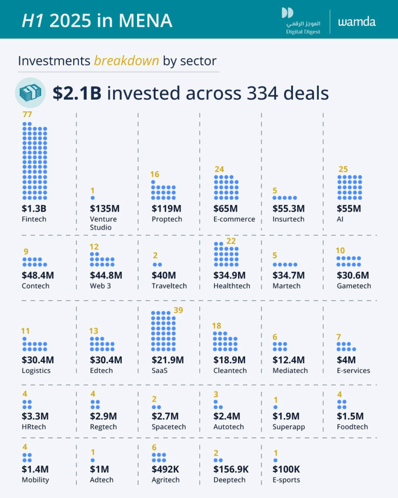 Investment in AI in the Middle East has surged in 2025. In the first half of the year, MENA startups attracted $2.1 billion across 334 deals, a 134% YoY increase according to WAMDA.